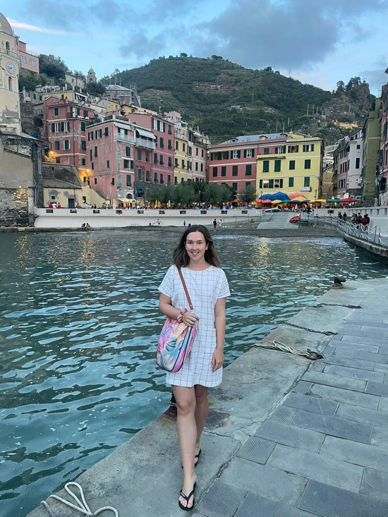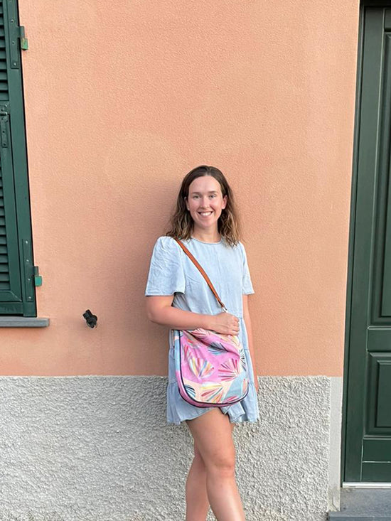 Inspired by colourful sunsets and sandy beaches sprinkled with shells, the gelato shell design was originally painted by Clare Mazitelli with a mixture of watercolours and acrylics creating beautiful painterly textures.