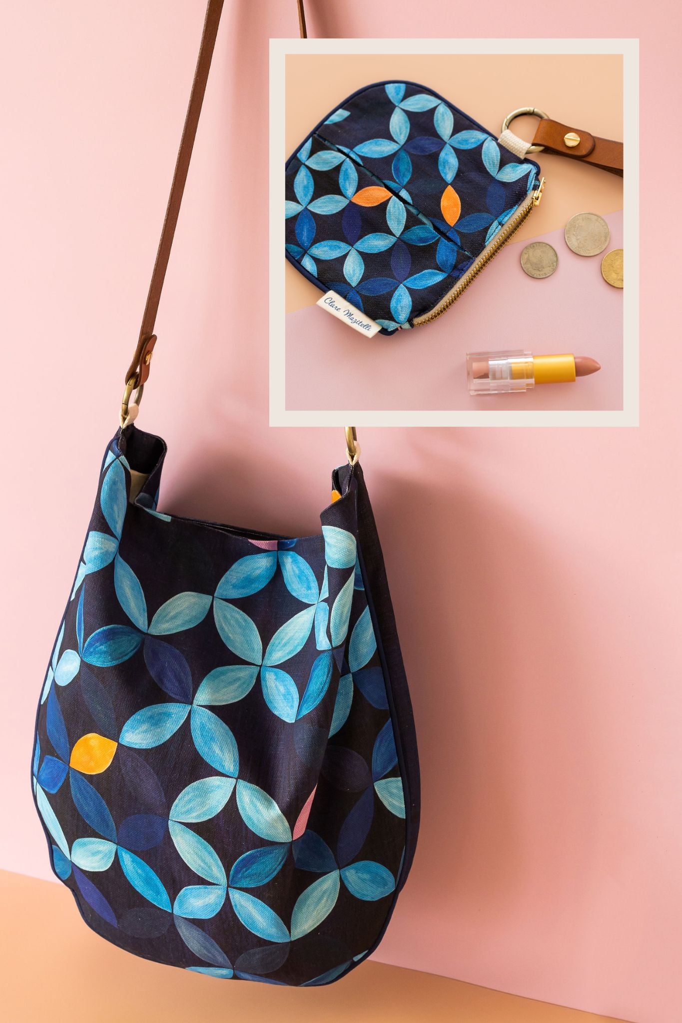 This gift set includes a shoulder bag and matching zip purse in the Midnight petal print.